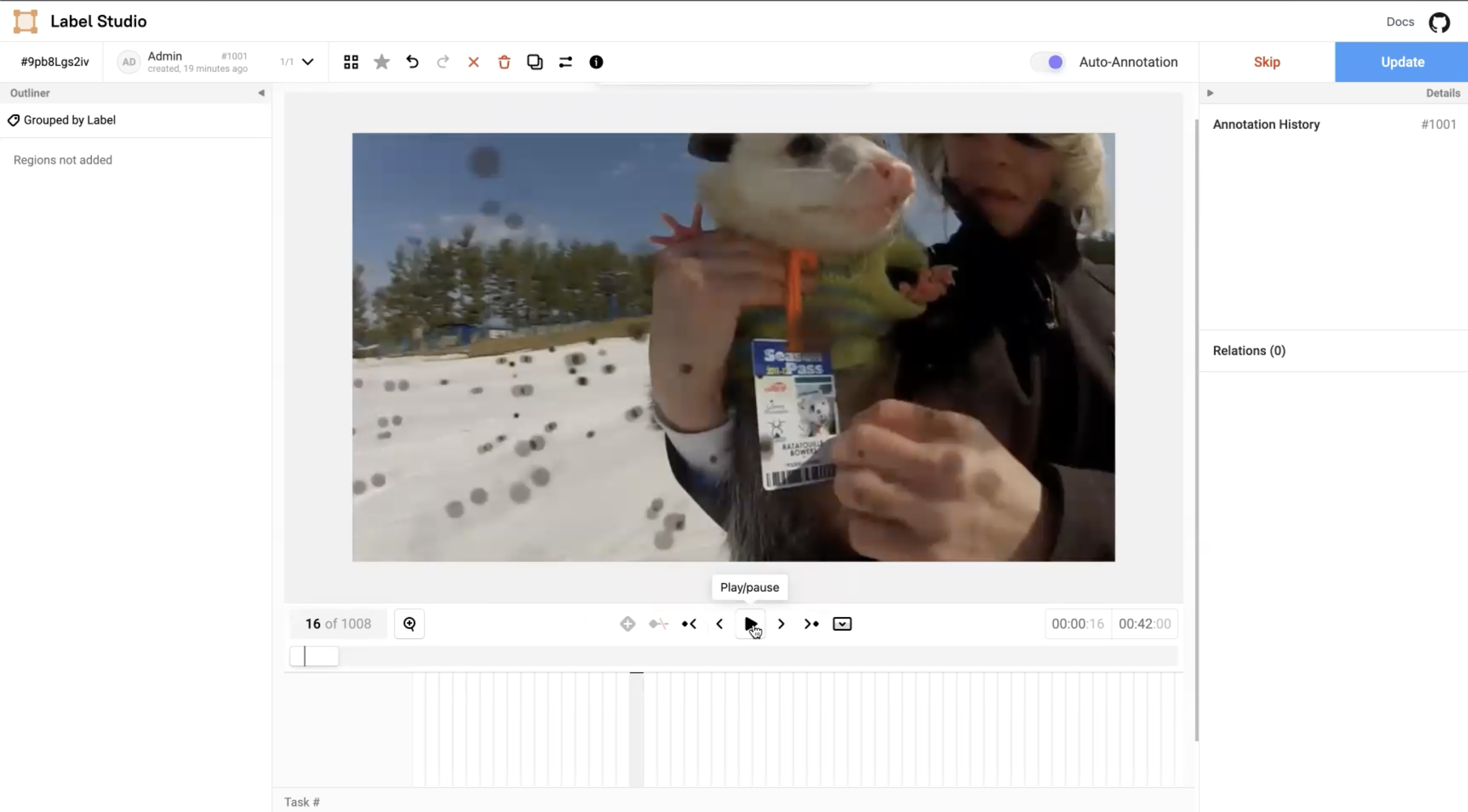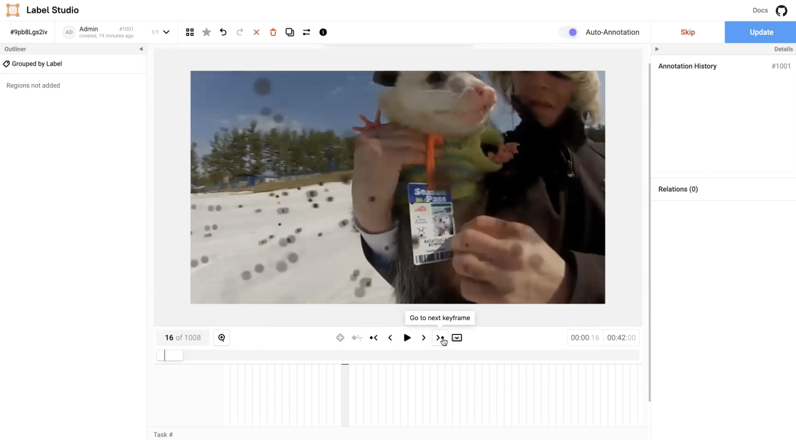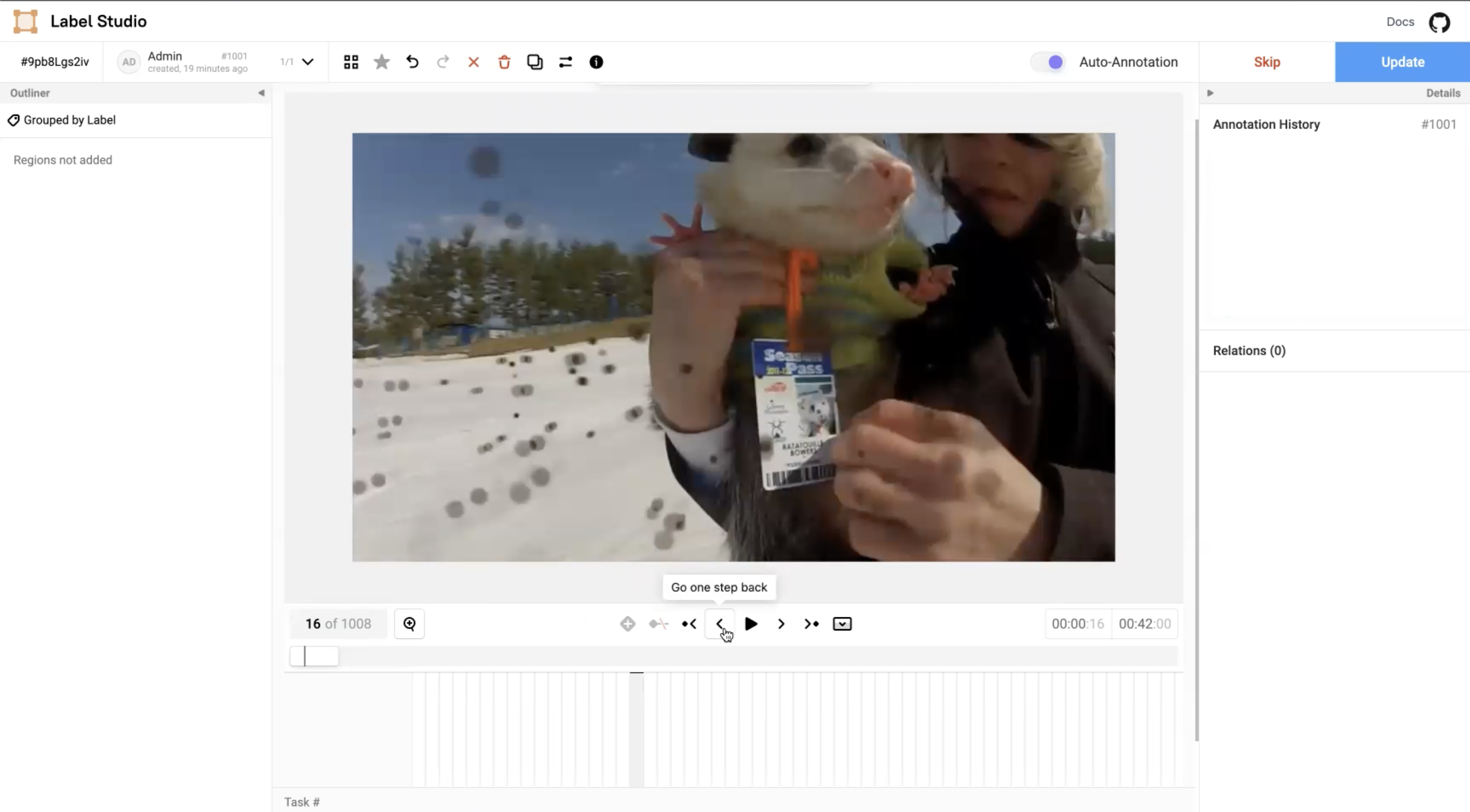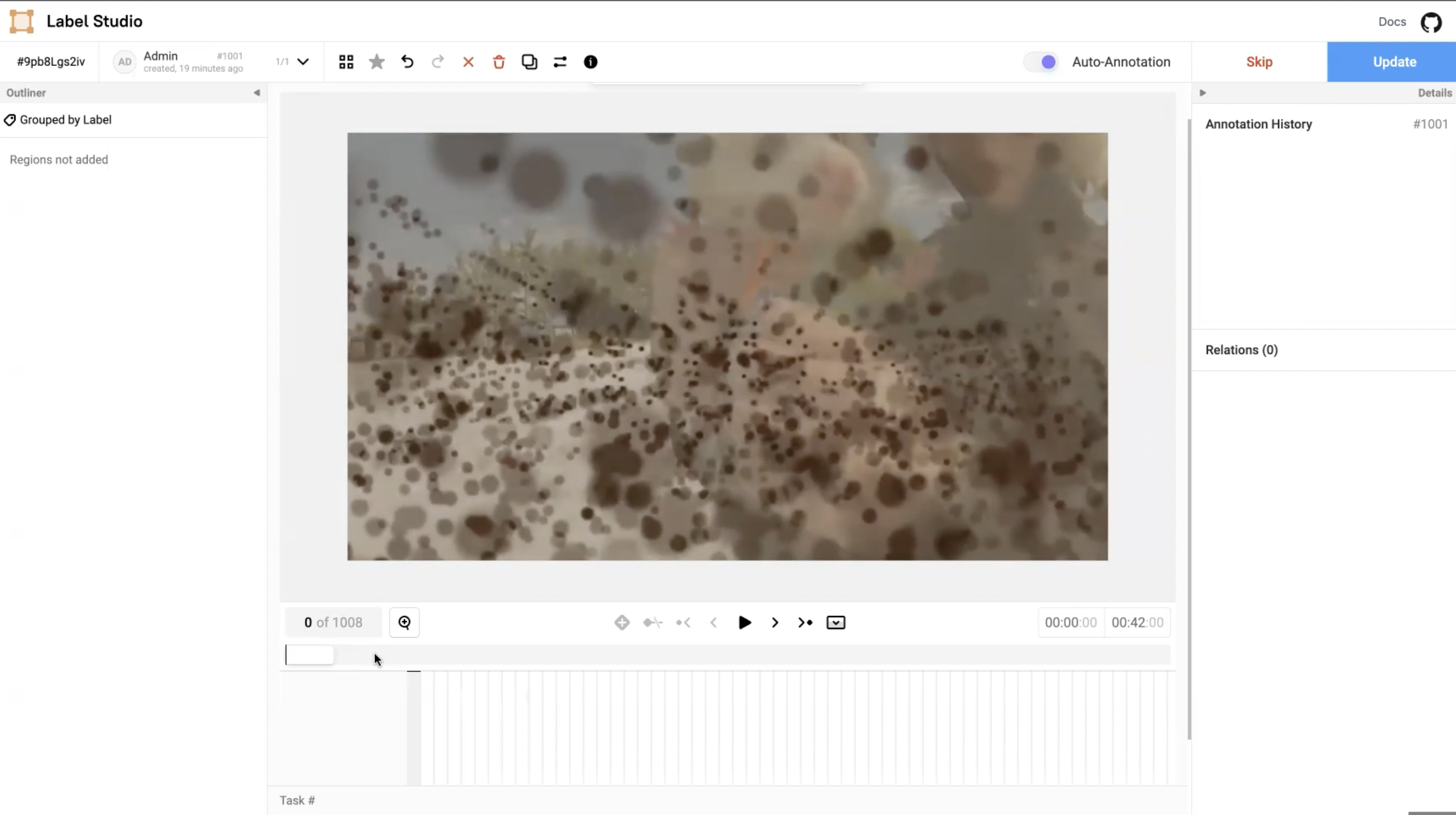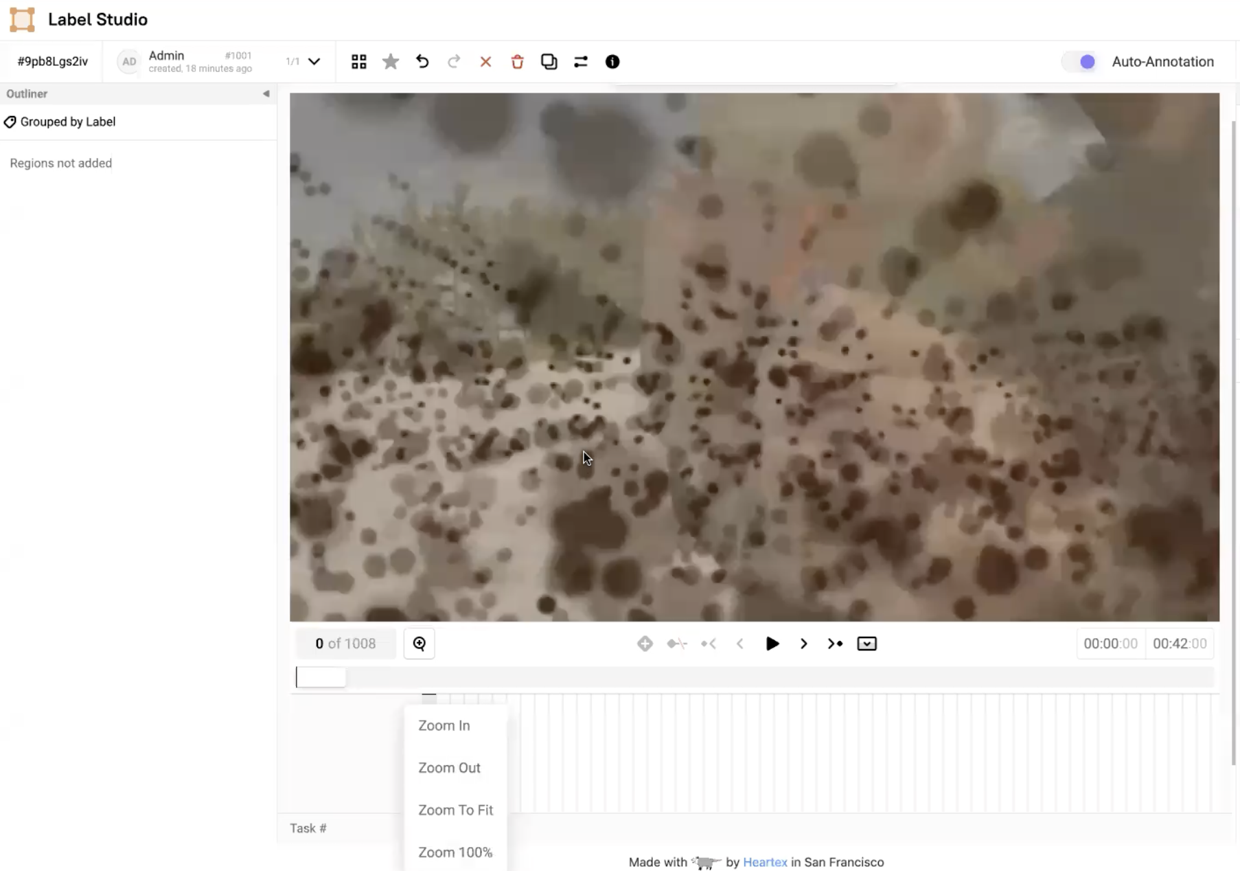 In the Label Studio UI, the video interface presents the main video canvas with controls that allows annotators to more precisely label blurry images using the following operations: